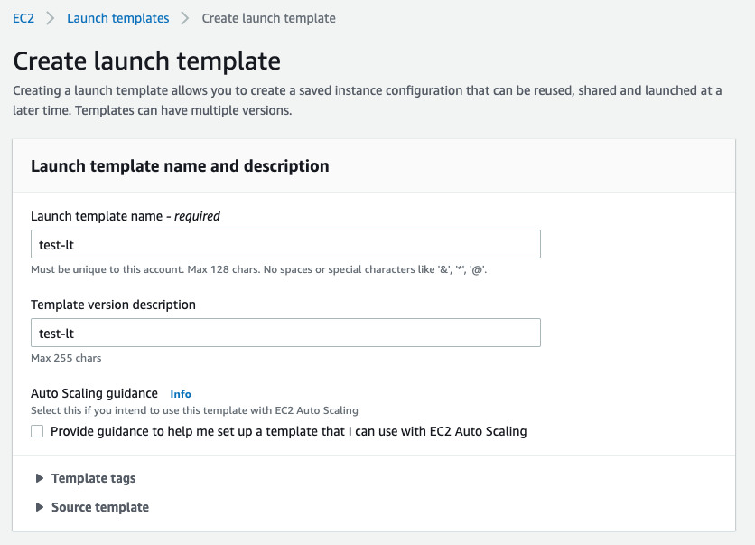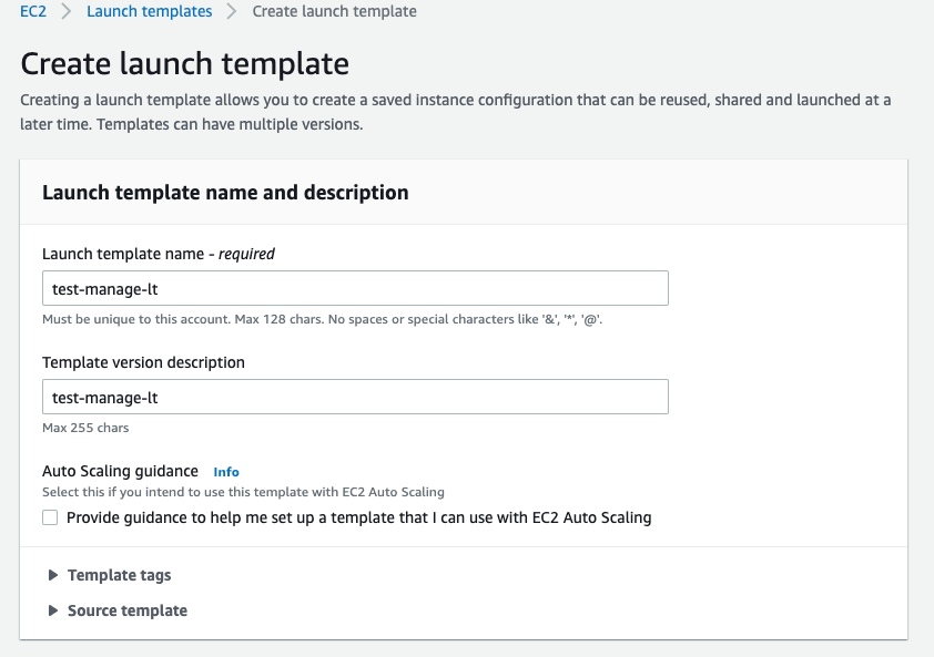 - Launch template name를 알맞게 입력