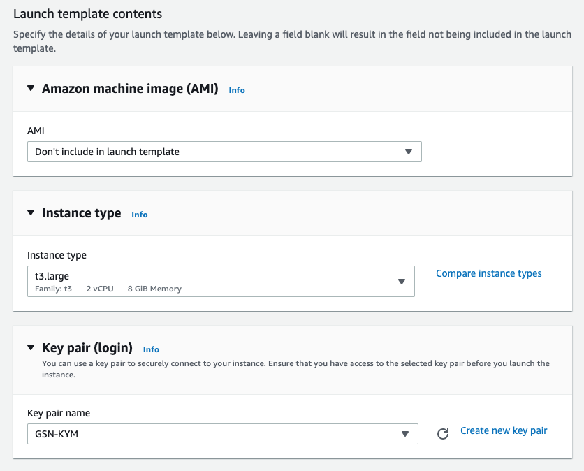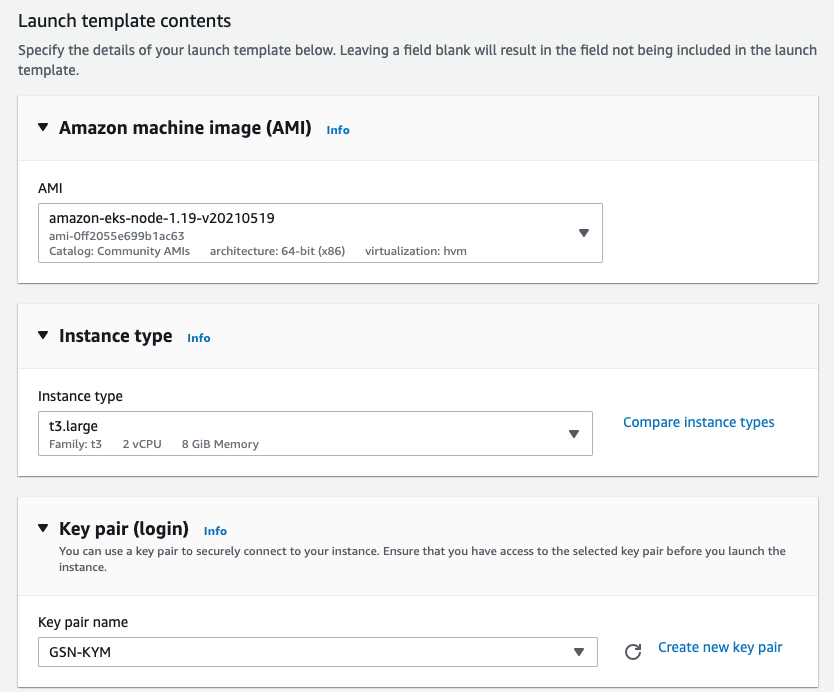 - Launch Template는 Node instance생성에 대한 정보들을 담고 있습니다. (AMI Image/Instance Type/Storage/Network 등)