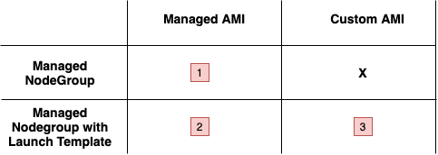 - Custom AMI : WorkerNode Instance의 AMI를 사용자가 직접 관리하는 방법 (이 방법은 곧 LaunchTemplate을 사용하겠다는 것임)