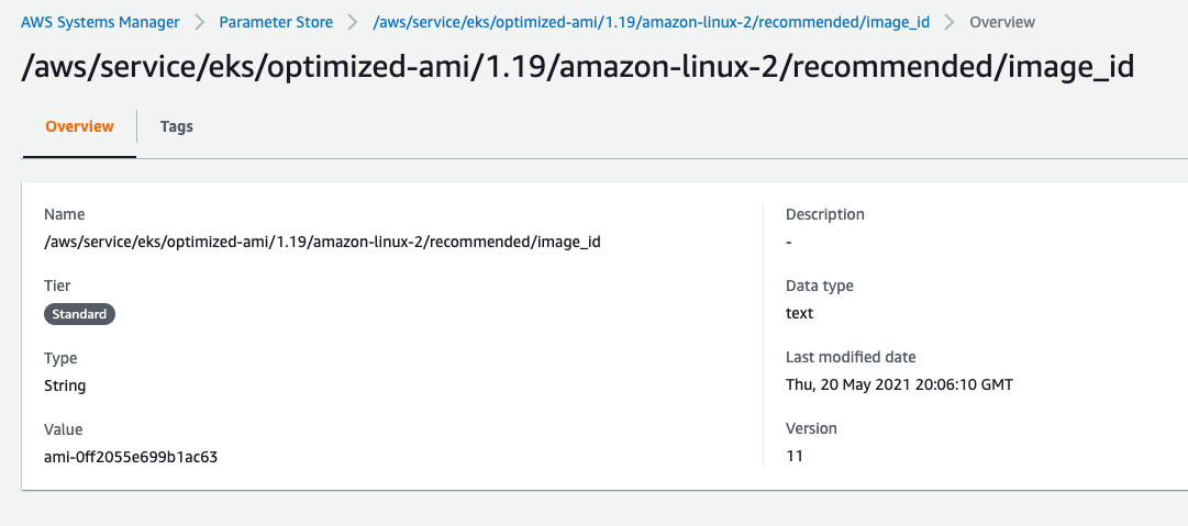 - EKS 최적화된 AMI이미지의 ID값을 아래 URL에서 검색합니다.