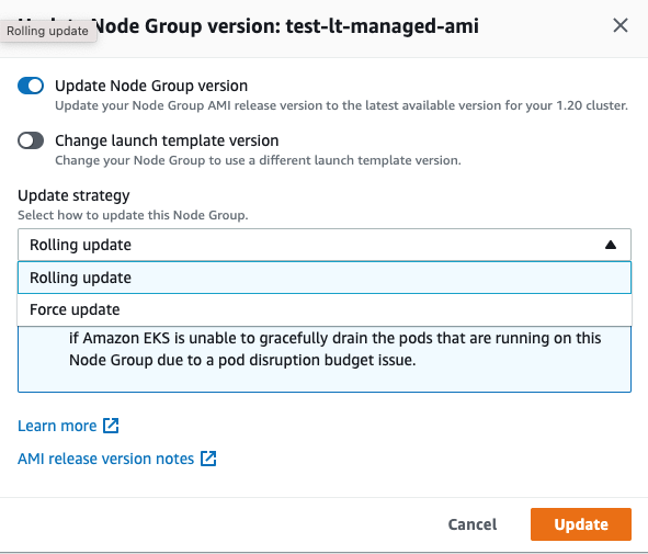 - 전략을 결정하여 구축하게되면 다른 전략으로의 수정이 불가능 하므로 Node Group을 새로 생성해야합니다